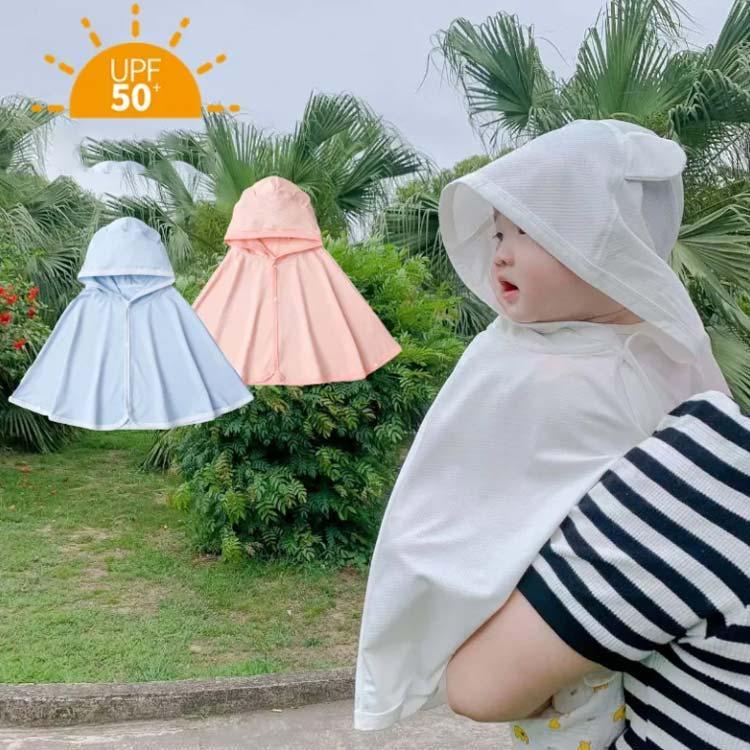 紫外線対策 かわいい ベビーマント UVカット 赤ちゃん フード付きケープ 接触冷感 薄手 ベビーケープ 春夏 冷房対策 ベビーポンチョ 日焼け対策